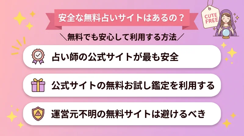 もっとも安全な無料占いサイトは占い師の公式サイトです。