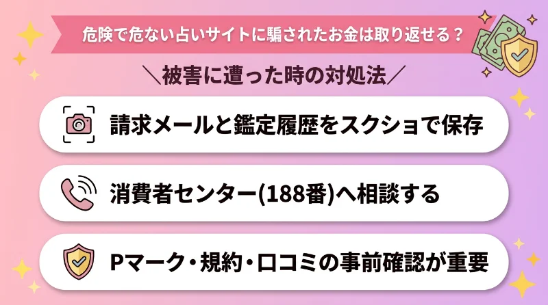 3.危険で危ない占いサイトに騙されたお金は取り返せる?
